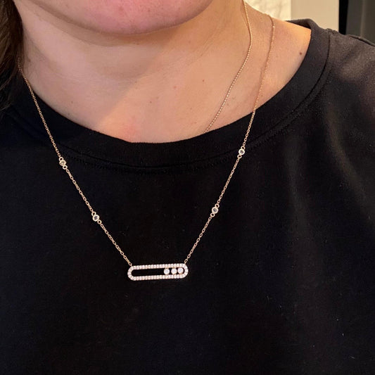 CADENA DOBLE MINI ROLON + DIJE PLACA CON PIEDRAS BLANCAS ORO AMARILLO ITALY ESP 18K 45CM - 5,01GR