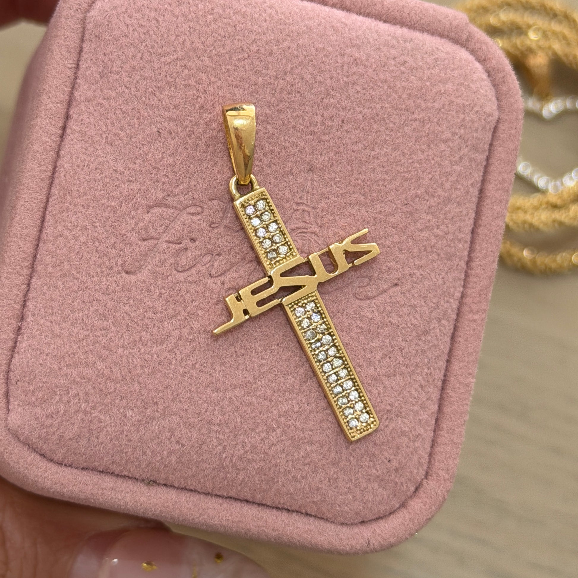 DIJE CRUZ PIEDRAS BLANCAS JESUS 3,5CM ORO AMARILLO 18K - 2,42GR