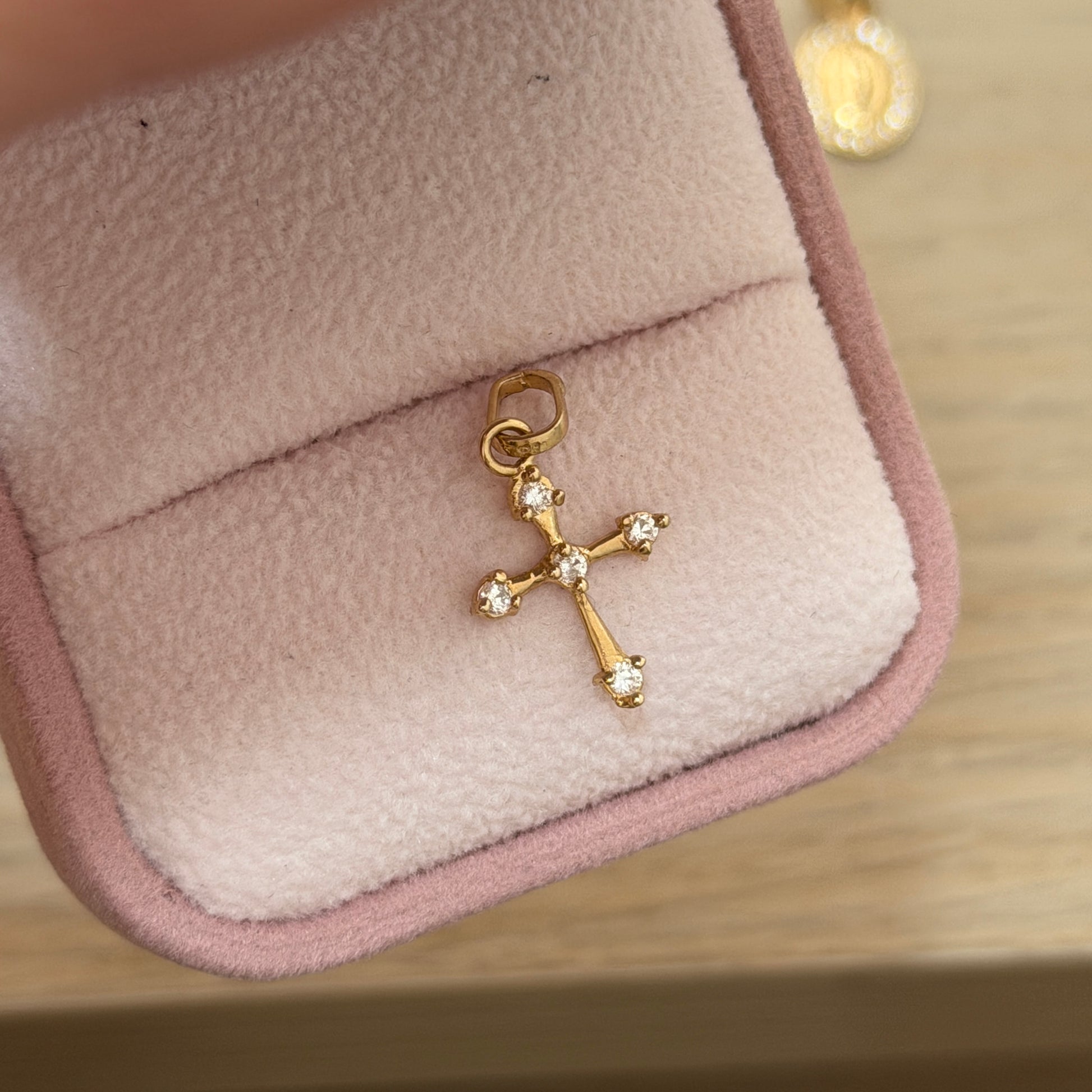 DIJE CRUZ PUNTAS PIEDRAS BLANCAS ORO AMARILLO 18K - 0,67GR
