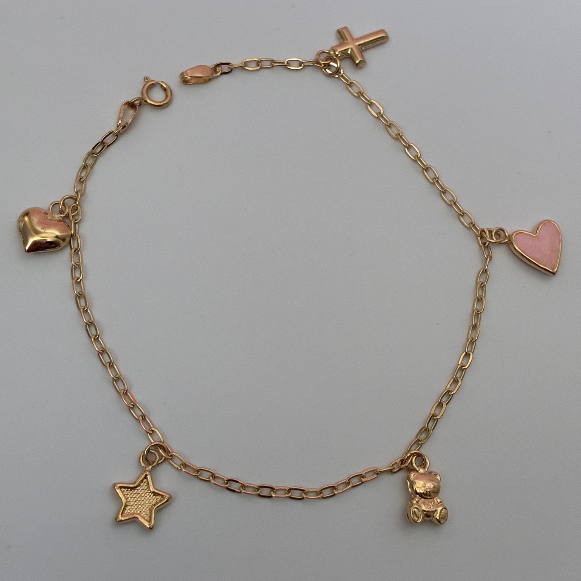 PULSERA DE LOS SUEÑOS CON DIJES OSOS + ESTRELLA + CORAZON + CRUZ ORO AMARILLO COL 18K 19CM - 2,55GR