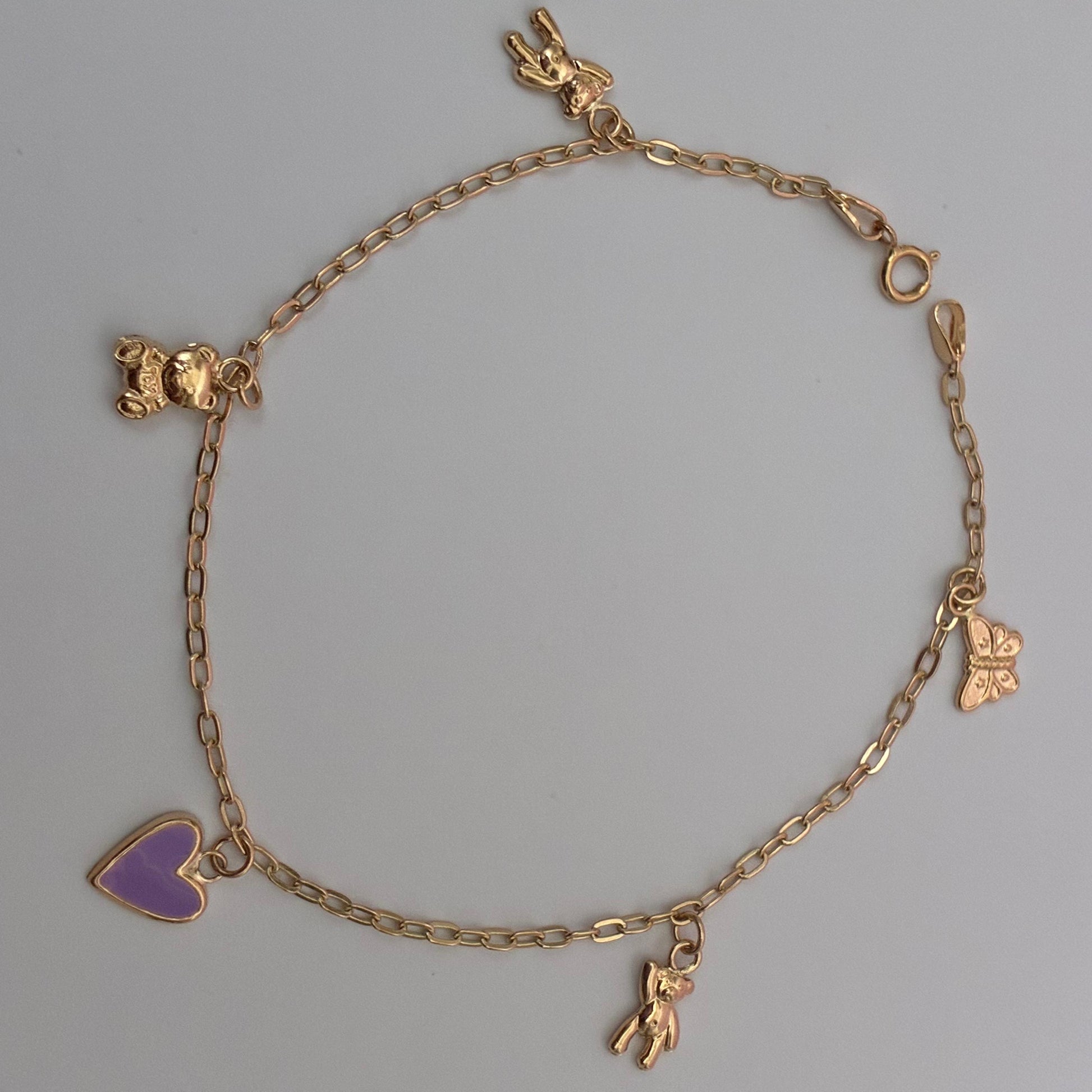 PULSERA DE LOS SUEÑOS CON DIJES OSOS + MARIPOSA + CORAZON ORO AMARILLO COL 18K 19CM - 2,38GR
