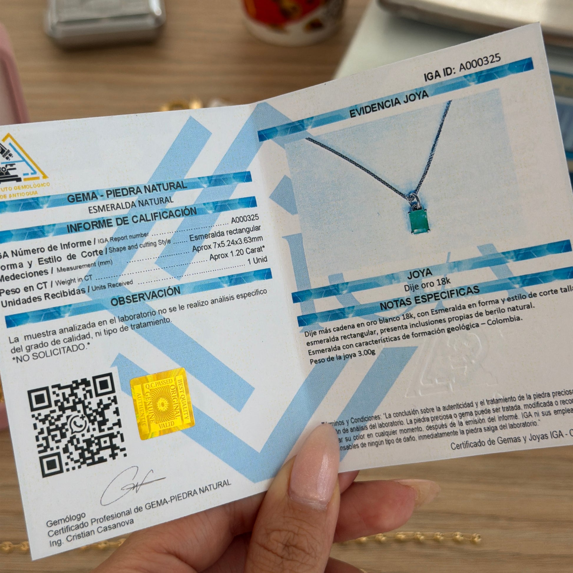 1.1MM MINI FRANCO CHAIN + 5.3MM X 6.9MM NATURAL EMERALD PENDANT WHITE GOLD ITALY 18K 50CM - 3.0GR
