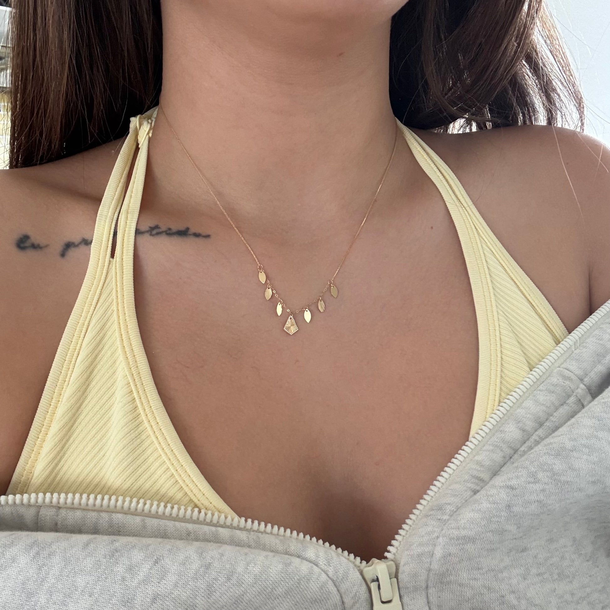 MINI FRANCO CHAIN ​​+ DIAMOND CHARMS YELLOW GOLD ITALY 18K 45CM - 1.1GR