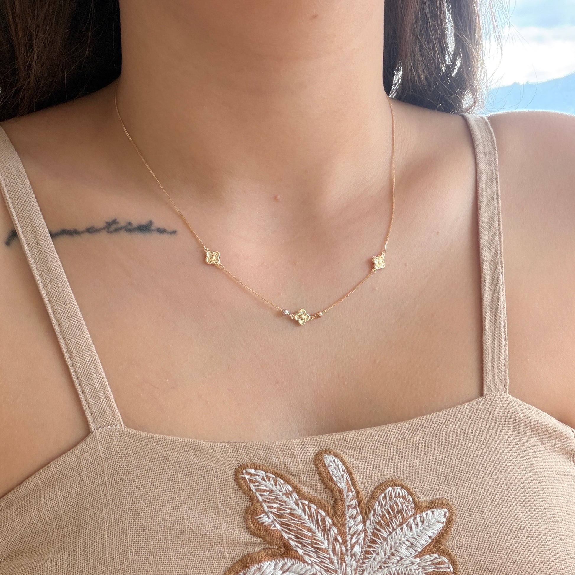 MINI FRANCO CHAIN + THREE PLAIN CLOVERS THREE GOLDS ITALY SP 18K 42CM TO 45CM - 1.14GR