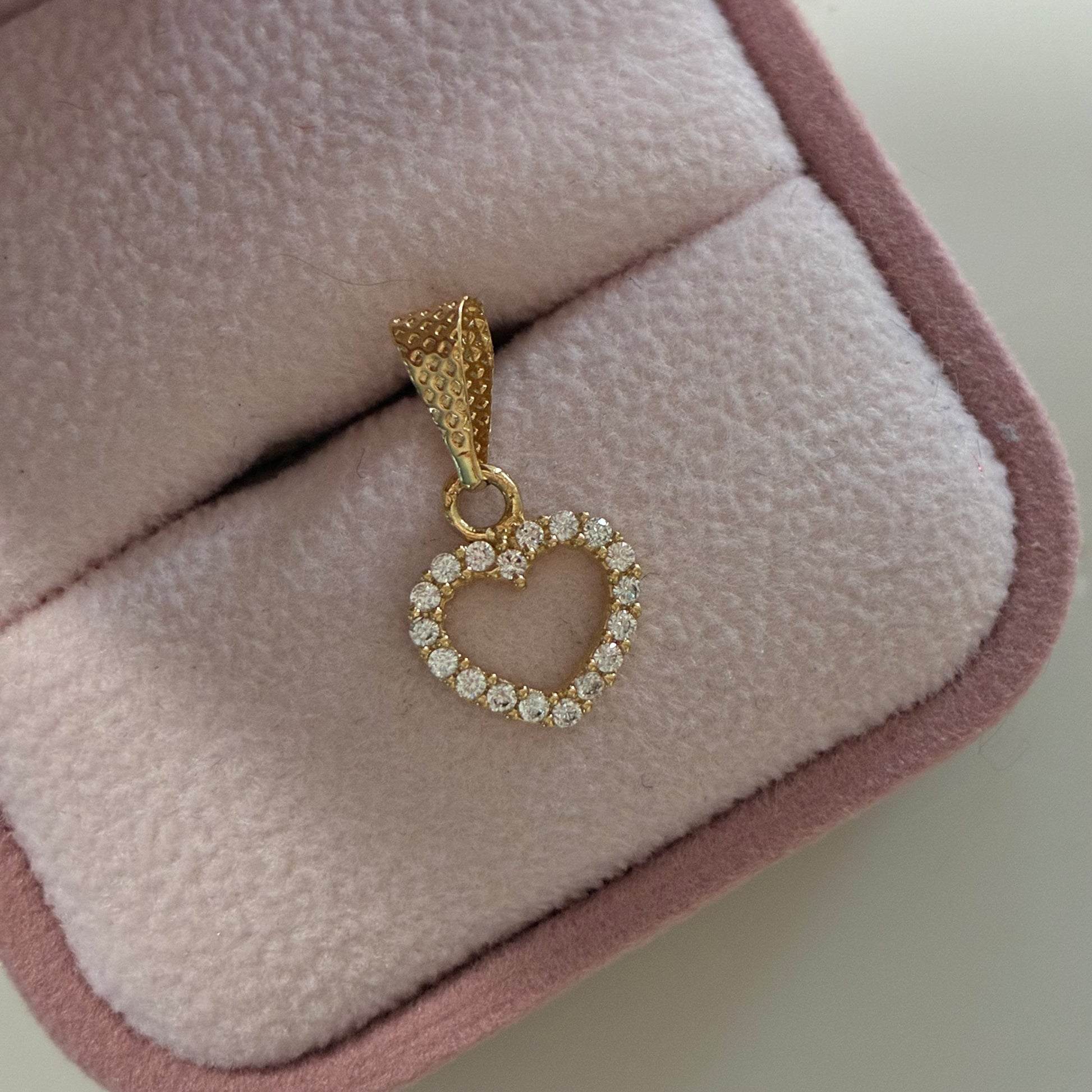 HEART SILHOUETTE PENDANT WITH WHITE STONES 1.8CM 18K YELLOW GOLD - 0.65GR