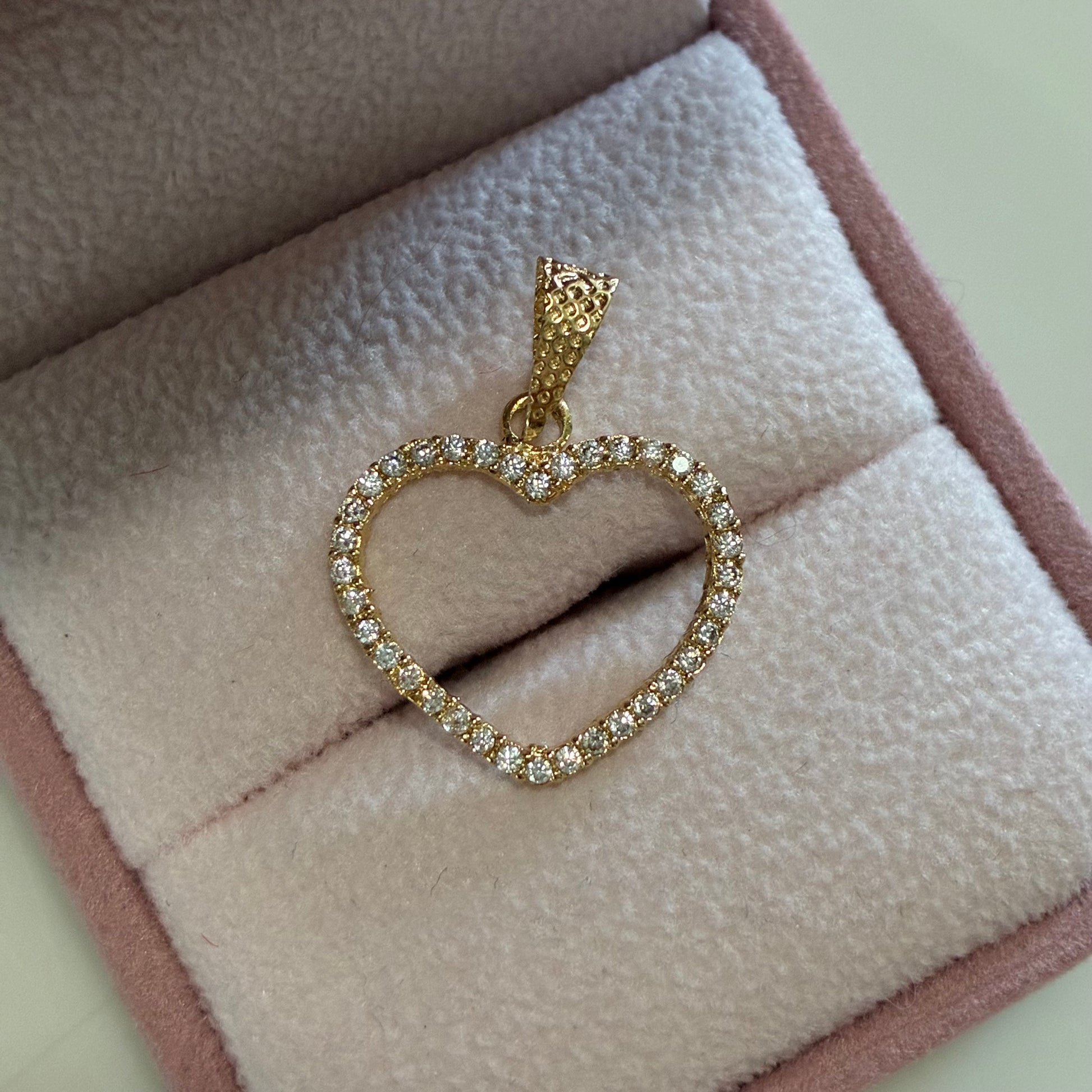 HEART SILHOUETTE PENDANT WITH WHITE STONES 2.4CM 18K YELLOW GOLD - 1.17GR