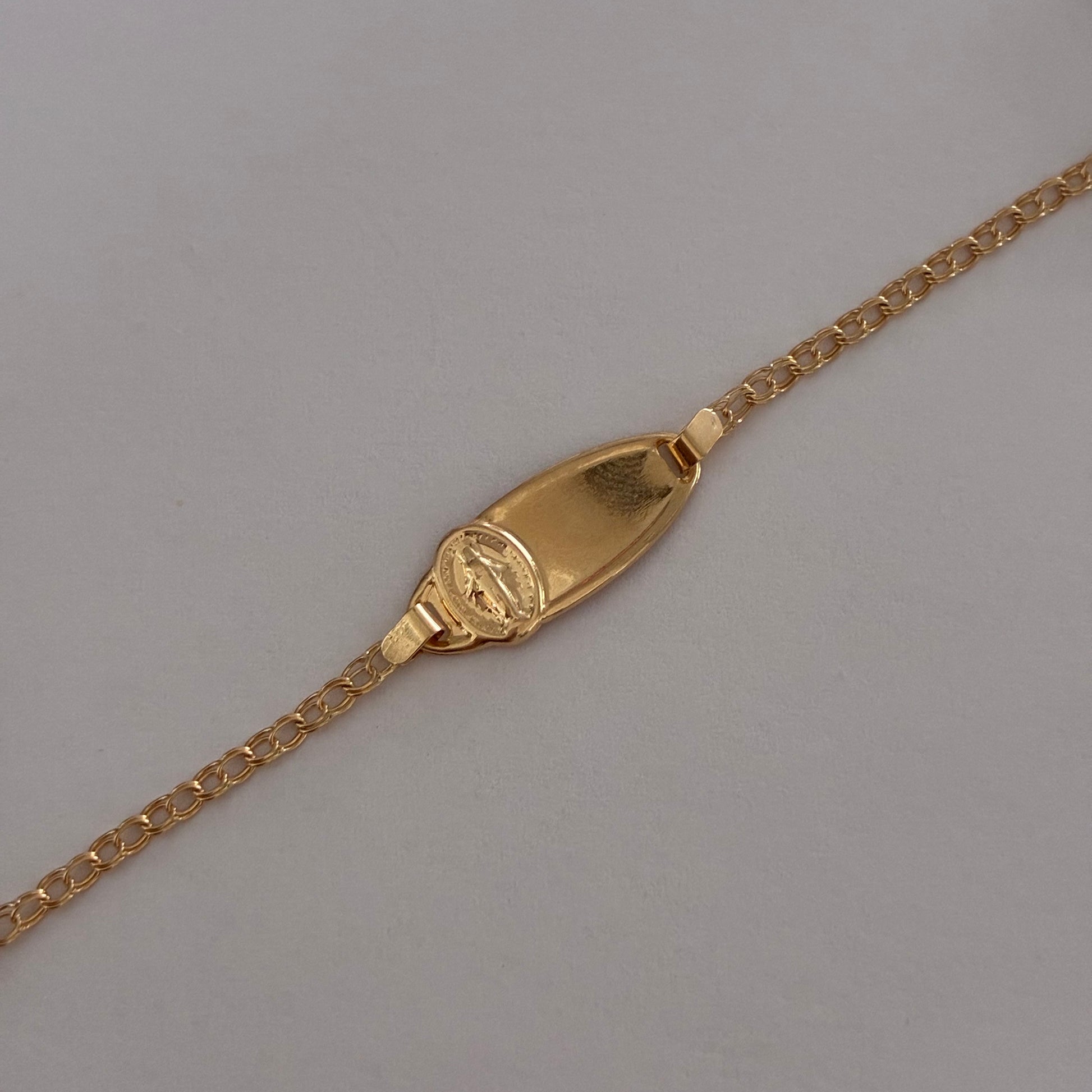 BABY BRACELET WITH OVAL PLAQUE WITH MIRACULOUS VIRGIN, FOLLOWED RING, 18K YELLOW GOLD, 13CM - 1.23GR
