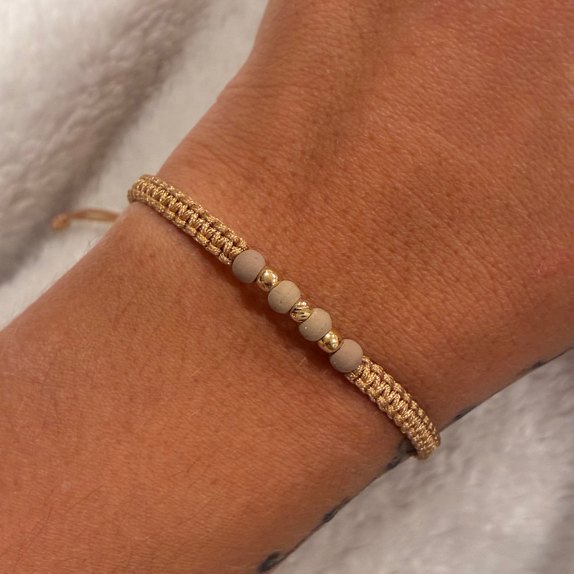GOLD THREAD BRACELET WITH 3 SMOOTH/DIAMOND 3MM BEADS IN 18K YELLOW GOLD - 0.15GR