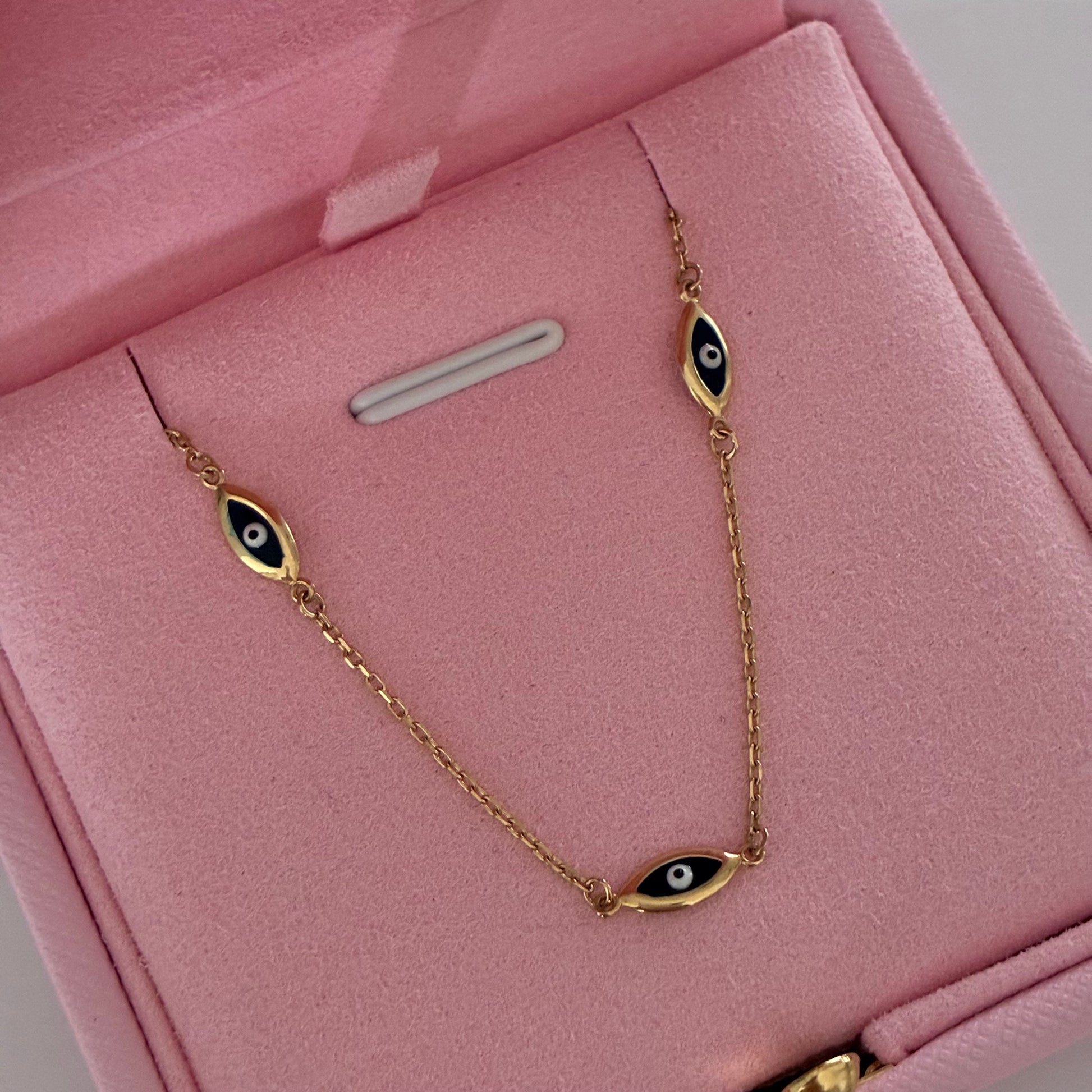 Turkish Eye Bracelet, Protective Gaze, 18K Yellow Gold, Italy, 18cm - 1.26g