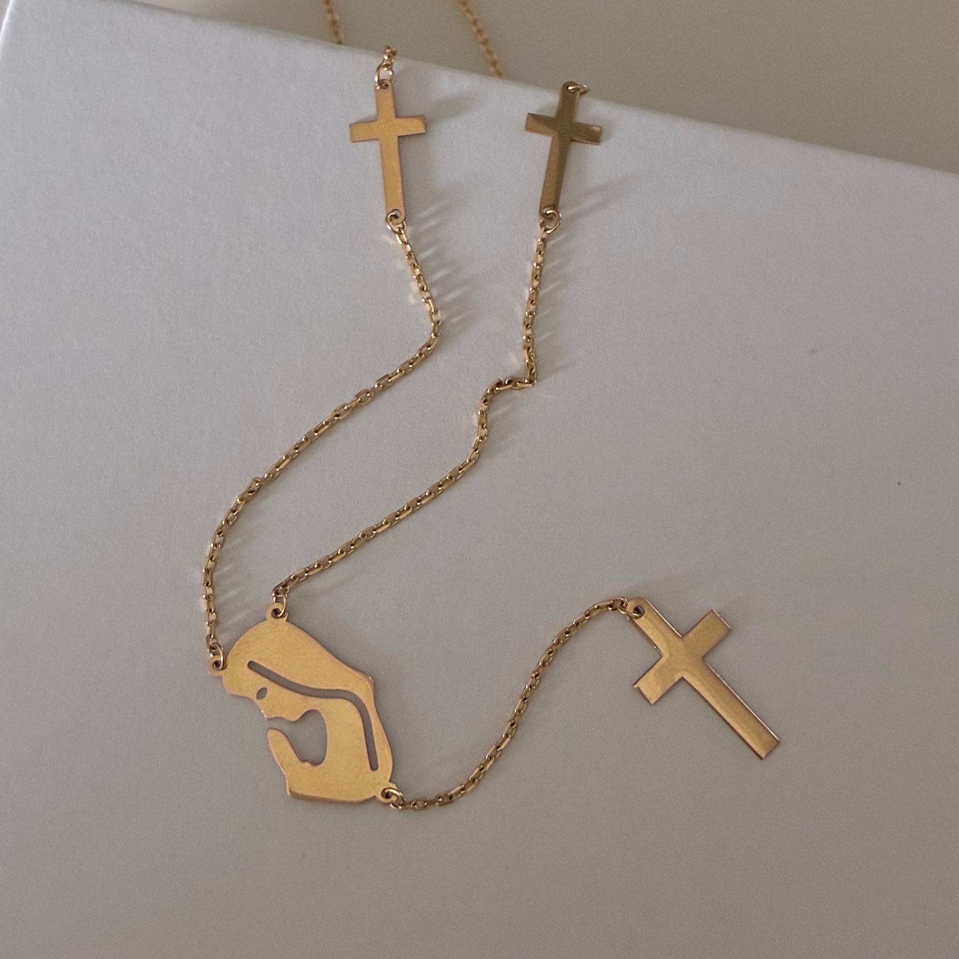MINI ROLON ROSARY WITH VIRGIN MARY YELLOW GOLD ITALY 18K 45CM - 3.53GR