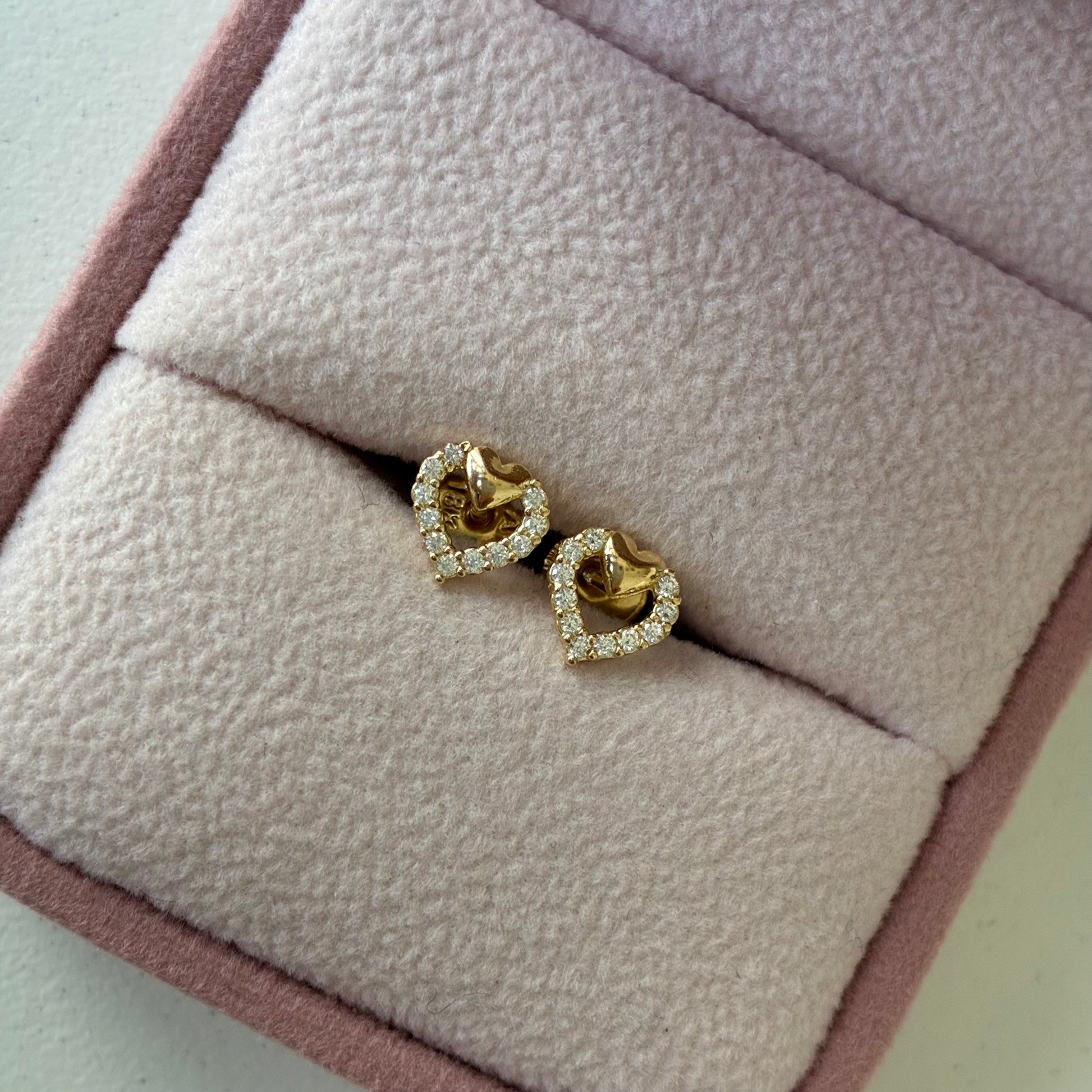 HEART-SHAPED WHITE STONES + PLAIN HEART 18K YELLOW GOLD - 0.77GR